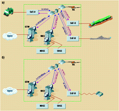 | Рис. 22. Структурная схема системы Secoms: подсистемы Ка (а) и EHF-диапазона (б) |
