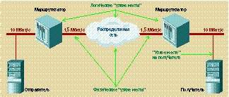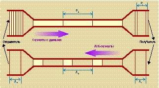 Покажем, что в этом случае скорость поступления подтверждений лимитируется наличием так называемых «узких мест» в сети между отправителем и получателем. «Узким местом» может быть либо сетевое устройство, либо часть канала, пропускная способность которого значительно уступает скоростным показателям сети в целом. Иногда «узким местом» становится станция-получатель.