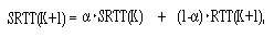 где SRTT(K) — так называемое сглаженное оцененное время обращения (Smoothed Round Trip Time). Нетрудно сравнить это выражение с предыдущим. Используя константу a (0 < a < 1), не зависящую от числа последних наблюдений, можно сформулировать условия, при которых учитываются все последние значения наблюдений, но более ранние наблюдения имеют меньший вес. Эту константу называют фактором сглаживания.
