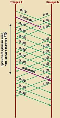 Поясним сказанное на примере. Предположим, что станция А передала последовательность сегментов, первый из которых был потерян. До тех пор, пока окно отправления станции А не обнулится и RTO не закончится, эта станция будет продолжать передавать сегменты, не дожидаясь получения подтверждений на ранее отосланные. Станция Б получила все сегменты за исключением первого. Ей надлежит помещать все принимаемые сегменты в буфер, пока не поступит копия потерянного сегмента. Более того, станция Б не может отправить данные приложению и тем самым очистить свой буфер до поступления этой копии. Если повторная передача потерянного сегмента по каким-то причинам сильно задержится, то после заполнения буфера станция Б начнет отбрасывать новые входящие сегменты.
