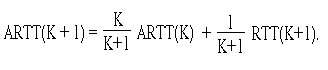 где RTT(i) — наблюдаемое время обращения i-го переданного сегмента, а ARTT(K) — среднее время обращения для первых K сегментов. Для удобства последующего изложения представим приведенное выражение в виде