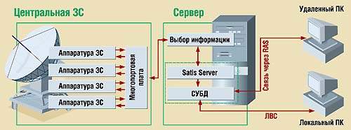 Вторая подсистема, которая, собственно, и управляет оборудованием, обеспечивает возможность прямого доступа к аппаратуре станции с любого ПК, имеющего доступ к серверу системы через Internet. Оператор или администратор, используя интерфейс Satis Monitor, может установить соединение с Satis Server с помощью средств Windows Soсkets и сформировать команды опроса аппаратуры или конфигурирования оборудования телепорта.