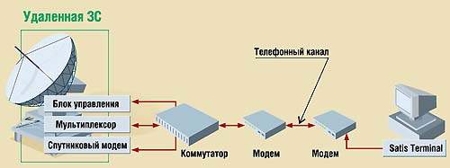 ПО системы управления клиентскими ЗС Satis Terminal обеспечивает связь с модемом удаленной ЗС по коммутируемому телефонному каналу и фактически представляет собой набор драйверов аппаратуры станции, объединенный управляющей оболочкой с Windows-интерфейсом пользователя (рис. 3). Один программно-управляемый коммутатор обеспечивает подключение до четырех устройств через интерфейс RS-232.