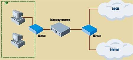 | Схема организации доступа к ТфОП и Internet из ЛС |