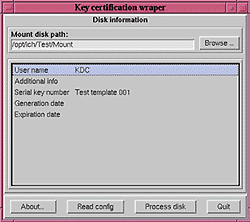 Перемещение ключей по технологической цепочке «генерация—регистрация—распределение—кодирующий модуль» должно проводиться только на ключевой дискете, сформированной на базе файловой системы MS DOS, поскольку она является единственной реально переносимой ОС. На дискете записываются два каталога: в одном содержится просто справочная информация о дискете, в другом — секретный ключ и набор сертификатов открытых ключей.