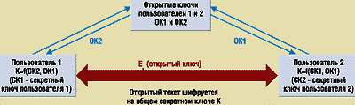 Управление ключами. В ПО «Тропа» реализована асимметричная схема шифрования с общим ключом (рис. 2), вырабатываемым на основе собственного и общего секретного ключа. Без-условно, данная схема работает несколько медленнее, чем, например, симметричная схема RSA (шифрование на открытом ключе абонента), но зато она дает больший простор для манипулирования ключами.