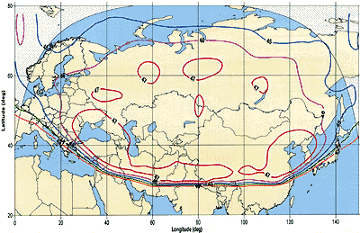О ставших реальностью перспективах использования спутника LMI-1 (750 в. д.) для российских пользователей Internet шла речь в выступлении Штефана Коллара, директора отдела продаж международной организации Intersputnik. По техническим параметрам КА и энергетике зоны покрытия LMI-1 уникален для российской территории (см. рисунок). Он способен обеспечивать Internet-услуги практически в любой точке страны. И Intersputnik намерен организовать прямой доступ к Internet-магистрали США с использованием собственных телепортов на восточном побережье США, подключенных к серверам основных провайдеров этой страны. Кроме того, для той же цели в ближайшее время корпоративным пользователям и Internet-провайдерам будут предлагаться высокоскоростные каналы LMI-1 и «Экспресс-6А» (как для асимметричного, так и для симметричного способов связи) с «приземлением» в трех европейских точках доступа. Весь спектр Internet-услуг, включая вещание и многоадресную рассылку, будет доступен вместе с трансляцией цифровых телеканалов в стандарте MPEG/DVB. Было приятно услышать, что эта международная организация активно участвует в российской программе дистанционного обучения по каналам Internet.