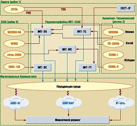Согласно концепции IMT-2000, система нового поколения подразделяется на две составные части: сети радиодоступа и магистральную базовую сеть. Подходы к их проектированию принципиально различны.