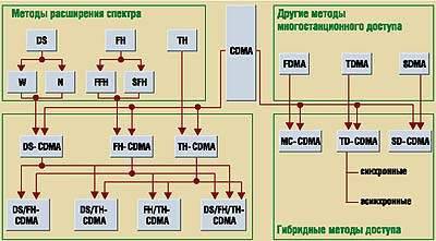 | Классификация методов расширения спектра и многостанционного доступа на базе CDMA |