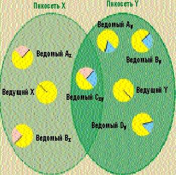 Несомненное достоинство системы беспроводного доступа Bluetooth — ее гибкость. Хотя в каждой пикосети только одно устройство является ведущим, его статус допускается менять в процессе работы, т.е. любой приемопередатчик может стать ведомым или ведущим. Важно отметить, что ведущее устройство одной пикосети способно действовать как ведомое в другой. Когда ведущее устройство покидает домашнюю пикосеть, обмен информацией в ней временно прекращается.