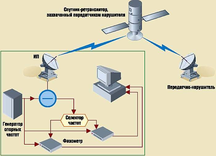 Схема определения координат «пиратского» передатчика с помощью фазовых измерений