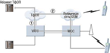 | Два способа маршрутизации вызова абонента корпоративного GSM в ТфОП 1. Вызов направляется через УАТС посредством набора кода доступа в сеть общего пользования и телефонного номера вызываемого абонента ТфОП 2. Вызов направляется через коммутатор сети GSM общего пользования непосредственным набором телефонного номера вызываемого абонента ТфОП |