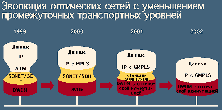Эволюция оптических сетей с уменьшением промежуточных транспортных уровней