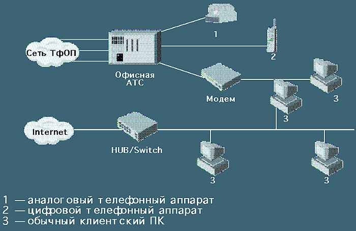 Рис. 1. Упрощенная схема раздельной телекоммуникационной инфраструктуры предприятий