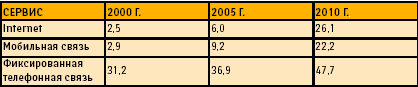 Динамика роста численности абонентов (млн чел.), предусматриваемая «Концепцией развития рынка телекоммуникационных услуг в России»