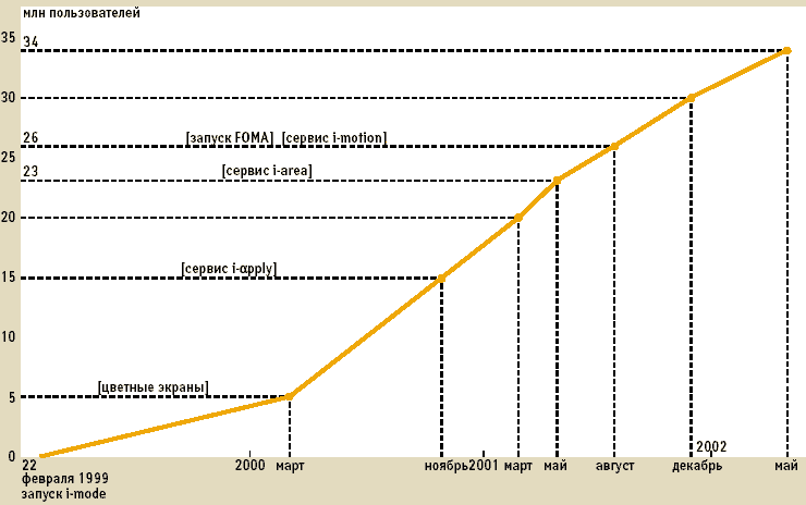 Динамика роста абонентской базы и числа контент-провайдеров в японской сети i-mode