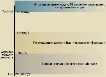 Итак, что же такое широкополосная сеть? «Определение этого понятия может меняться, — отмечает Рошитт. — На мой взгляд, терминология Федеральной комиссии по связи безнадежно устарела, тогда как термины TechNet чересчур фантастичны».