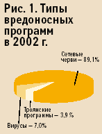 Любопытно, что четыре верхние позиции в десятке самых распространенных вирусов 2002 года заняли вредоносные программы, использующие для своего распространения IFRAME-брешь в системе безопасности Internet Explorer. В целом на них приходится более 85% всех инцидентов.