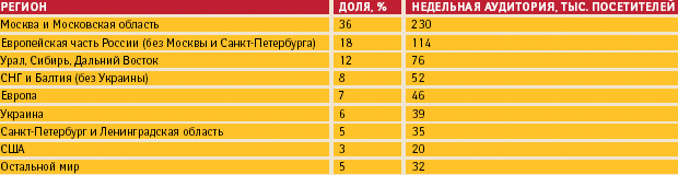 Распределение посетителей Internet-магазинов по регионам (по данным SpyLog)