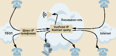 Принципиальная схема решения по организации IP-контакт-центра с помощью VoxPoint-IP компании Cayo
