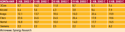 Изменение долей рынка VoIP-портов в корпоративном секторе (%)