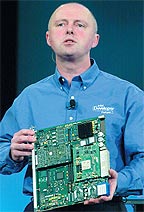 Современные рыночные позиции Intel в сетевой индустрии достаточно прочны. Компания остается ведущим поставщиком компонентов для Ethernet-оборудования. В прошлом году корпорация заняла первое место по производству сетевых процессоров (семейство Intel XScale), чему в определенной степени способствовал выход в сегмент сетевых процессоров для «тяжелого» оборудования (в 2002 году Intel довольствовалась скромной четвертой строчкой). Объединив в составе Intel Communications Group пять прежде самостоятельных сетевых/коммуникационных подразделений, руководство Intel поставило перед компанией весьма амбициозную задачу — стать ведущим поставщиком компонентов для всей телекоммуникационной индустрии. Как подчеркивалось на IDF, компания продолжит выпуск различных сетевых процессоров, элементной базы для оборудования Gigabit Ethernet, компонентов оборудования оптических сетей. И все-таки стратегическим направлением на ближайшие годы станут беспроводные технологии.