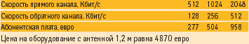 | Таблица 1. Тарифы на услуги спутникового доступа компании SatGate, (стоимость абонентского оборудования равна 320 долл.) |