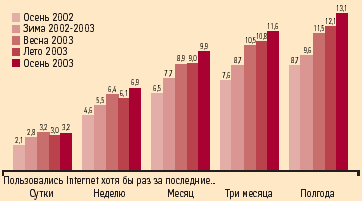 | Рис. 1. Динамика активности использования Internet в России, млн чел. |