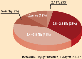 | Рис. 2. Распределение частот, используемых в сетях WiMAX (прогноз на 2006 г.) |