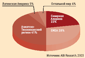 | Рис. 3. География продаж клиентского оборудования стандарта 802.16 (прогноз на 2006 г.) |