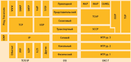 Соответствие уровней OSI в архитектурах TCP/IP и OKC-7