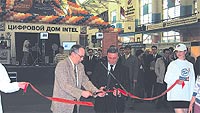 | МЭР САРАТОВА Юрий Аксененко (справа) и Николай Паутов из Intel открывают «Карнавал цифровых технологий» |