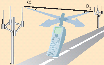 | Рис. 1. Определение местоположения абонента по направлению прихода сигналов |