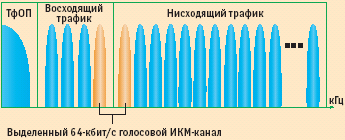 | Рис. 1. Выделенные голосовые каналы в линиях ADSL2 |