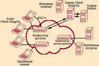 Программа Network Admission Control от Cisco использует приложения ведущих антивирусных разработчиков для инспекции подключающихся к сети ПК. Это позволяет маршрутизатору Cisco со специальной опцией IOS отказывать неблагонадежным клиентам в доступе к сети. Корпорация планирует анонсировать возможность обеспечения карантина подозрительных клиентов посредством стандарта 802.1x и безопасных VLAN на своих коммутаторах Catalyst в 2005 году.