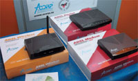 Кроме линейки Sprinter@56K, ассортимент Acorp пополнился устройствами ADSL-доступа. Они также адаптированы к российским линиям связи и представлены пятью моделями, с помощью которых можно не только подключаться к широкополосному каналу Internet, но и развернуть беспроводную сеть Wi-Fi в небольшом офисе или дома. Для индивидуального доступа в Internet тайваньская фирма разработала простейшее устройство Sprinter@ADSL-USB (рекомендованная розничная цена — 45 долл.). Более сложный модем Sprinter@ADSL LAN100 оснащен интерфейсами Ethernet и USB, способен работать в режиме моста и маршрутизатора, поддерживает функции разделения доступа и имеет встроенные средства сетевой защиты. Sprinter@ADSL LAN100 стоит 69 долл., а его «собрат» LAN400, оборудованный четырьмя Ethernet-портами, — на 10 долл. дороже.