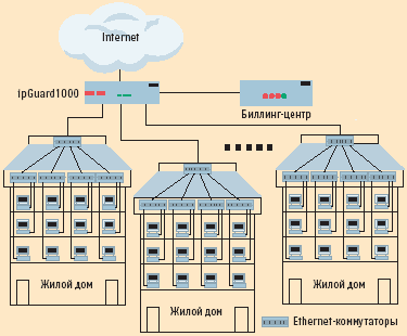 | Рекомендуемая схема применения сервера безопасности ipGuard в домовых сетях провайдеров |