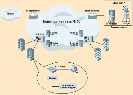 Схема развертывания телевизионных услуг "Стрим-ТВ" на базе транспортной сети МГТС