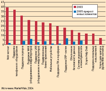 О том, насколько востребованы такие сервисы в нашей стране, можно только гадать. Например, Market-Visio оценивает объем отечественного рынка ИТ-аутсорсинга примерно в 80-90 млн долл. Проверить истинность этих цифр не представляется возможным: во-первых, среди российских специалистов до сих пор нет единого мнения о точном значении термина «аутсорсинг», а во-вторых, далеко не все заказчики готовы предоставлять информацию об участии в подобных проектах. Но даже если предположить, что указанная сумма отражает реальную ситуацию на рынке, большая часть сделок приходится на разработку заказного ПО и поддержку службы Help Desk сторонними фирмами.