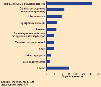 Речь, естественно, идет не о полном исчезновении вирусов и их создателей. Предлагается подход к обеспечению безопасности, при котором у компании-заказчика перестает болеть голова по поводу постоянной модернизации средств защиты, политик и регламентов, все равно не уберегающей предприятие от убытков при очередной Internet-эпидемии. Уместно отметить, что в качестве актуальных на текущий момент факторов, тормозящих развитие рынка ИБ, аналитики IDC называют техническую сложность предлагаемых решений и проблемы с их взаимодействием, а первая четверка наиболее серьезных угроз для предприятий представлена вирусами и «троянами», Internet-червями, шпионским ПО и непреднамеренными ошибками персонала.