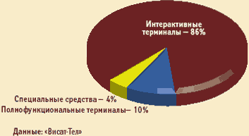 По сведениям гендиректора «Висат-Тел», 86% используемых в мире VSAT-терминалов являются интерактивными, 10% — полнофункциональными, а 4% классифицируются как специальные средства связи. При этом ЦС интерактивных VSAT-сетей в мире насчитается уже больше 100, а в России — пока только семь. В 2005 году в нашей стране могут быть построены еще пять-шесть интерактивных ЦС. Потенциально 12-13 таких станций могут обеспечить работоспособность сетей, состоящих из 100 тыс. терминалов VSAT стандарта DVB RCS. Однако сейчас на территории России применяются не более 500 таких терминалов, что как минимум в пять раз меньше числа действующих полнофункциональных станций VSAT.