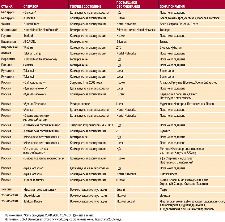 Сети CDMA-450 в Центральной, Восточной и Северной Европе, России и СНГ
