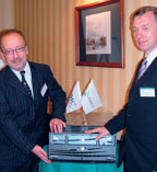 | Люк Брюне (слева) и Владимир Шибанов представляют систему Aqua Array AX100 |