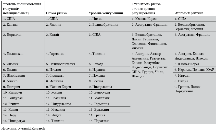 Рейтинг стран по степени готовности к развитию модели MVNO