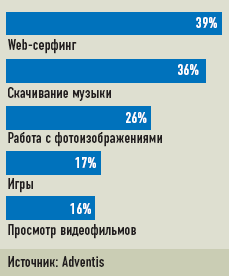 Первым шагом на этом пути стало увеличение пропускной способности абонентских линий за счет использования технологий DSL и FTTx. Качественное улучшение скоростных характеристик доступа к Сети отразилось на структуре потребностей конечных пользователей. Согласно результатам опроса, проведенного аналитическим агентством Adventis, среднее время их работы в Сети увеличилось с 11 (при подключении dial-up) до 16 (при соединении ADSL) часов в неделю.