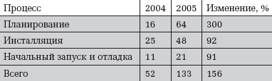 С 2004 года среднее время планирования проектов, подразумевающих внедрение VoIP, увеличилось в четыре раза. На этот, подготовительный, этап участники опроса тратят больше всего времени, стараясь определить стадии реализации проекта, в том числе степень подготовки сетевой инфраструктуры. Вероятно, на них повлияли рассказы коллег о тех кошмарах внедрения, к которым приводит плохое планирование.