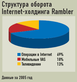 В 2005 году выручка компании Rambler составила 21,4 млн долл., и это практически в два раза больше результата 2004 года (12,5 млн долл.). Прибыльным холдинг стал лишь в 2005 году, получив 111 тыс. долл. чистой прибыли. Самым доходным является Internet-направление, которое формирует 69% доходов. Еще 18% приносят продажи мобильного контента, а 13% — услуги телевещания (канал Rambler-TV).