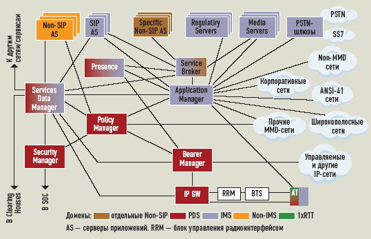 Policy Manager (PM) — обеспечивает общее управление и контроль над распределением ресурсов сети (QoS, PFO, mobility, access и т.п.); поддерживает как SIP-, так и non-SIP-приложения.