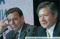 | Экс-канцлер Германии Герхард Шредер (слева) считает, что Россия сегодня — не только нефть и газ. В этом с ним солидарен российский министр Леонид Рейман |