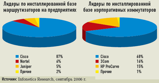 В 2006 году стало окончательно ясно, что рыночный сегмент инфраструктурного оборудования для корпоративных сетей утратил былую привлекательность для крупнейших производителей — за исключением Cisco и HP (ее подразделения ProCurve). «Снизу» их «подпирают» множество небольших компаний (преимущественно из Восточной Азии), изначально выбравших беспроигрышную тактику ценового давления на рынок. Согласно данным разных аналитических агентств, Cisco и HP занимают, соответственно, первое и второе места по объемам глобальных поставок инфраструктурных решений.